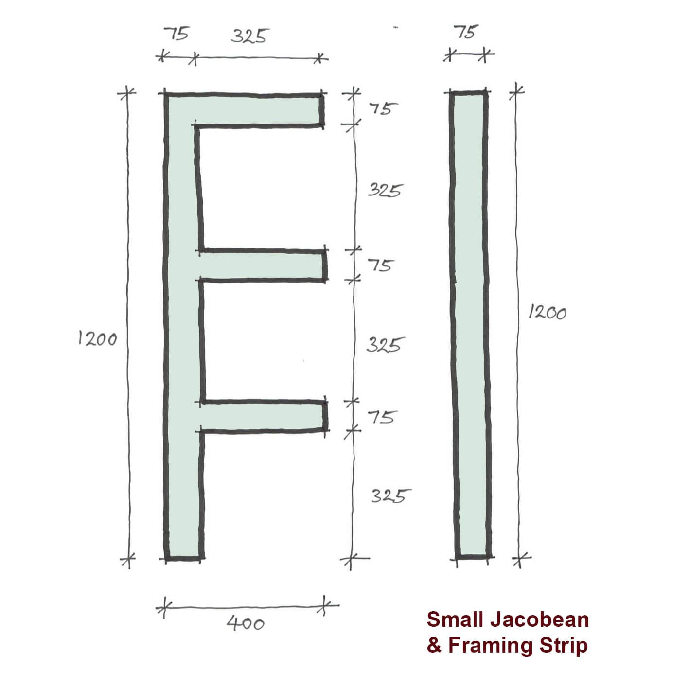 With open-backed panelling you will probably also need a few ‘framing strips’  (third image above) to complete the panelled area at the end of a wall run.  Please see our Framing Strips page to see if these will be required for your particular project and to add them to your order. Please note that you may also wish to run framing strips as a ‘Starter Rail’ immediately above the skirting line as the Jacobean design does not incorporate a bottom rail.