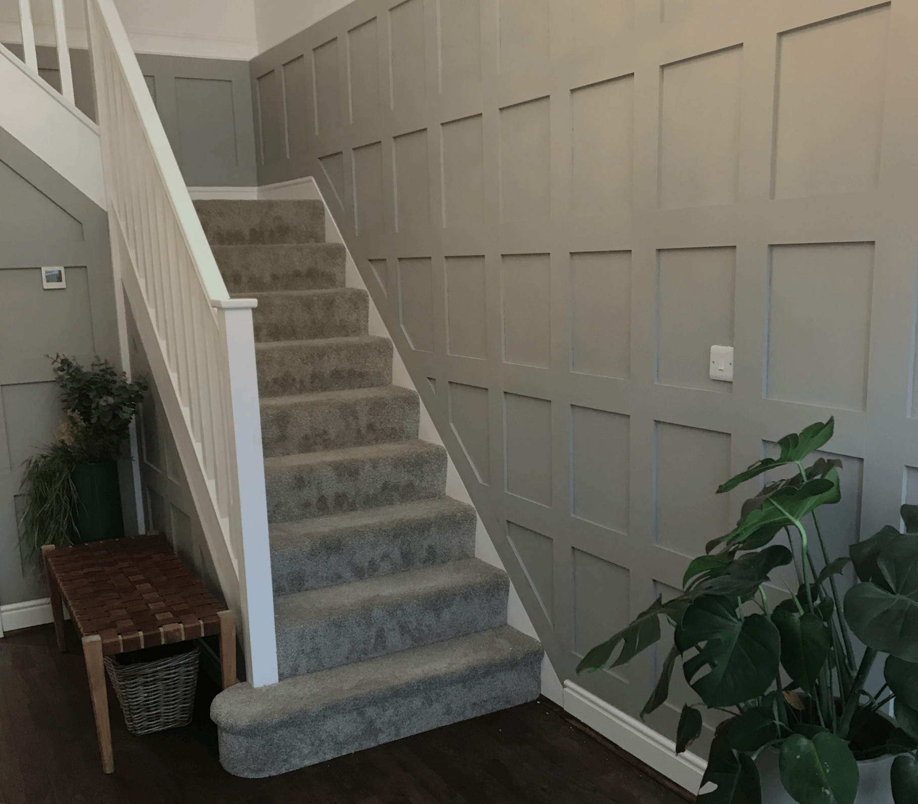 Frames of premium grade MDF applied to flat walls to recreate traditional solid panelling.